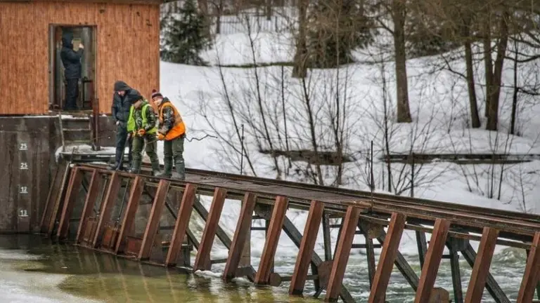 Специалисты начали регулировать водосброс на центральной плотине. Новый автоматический датчик передаёт данные на пульт экстренных служб