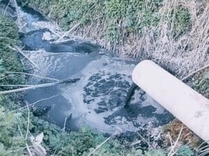 Техническая вода с иловых карт сливается через дренажную трубу, нарушая экологические нормы. Муниципальные власти игнорируют проблему, несмотря на проверку Комитета лесного хозяйства.