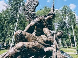 Недавно у мемориала «Чёрный тюльпан» в Наро-Фоминске открыли скульптуру «Подвигу защитников Отечества». Бронзовый ангел держит раненого солдата. Композиция создана Дмитрием Клавсуцом из Студии военных художников им. Грекова. На камне выбиты 238 имён земляков, погибших в СВО, 23 — в Афганистане и 21 — на Северном Кавказе.