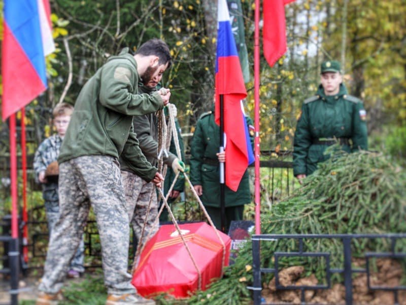 В Атепцеве установили мемориал и торжественно захоронили останки трёх защитников Москвы, найденных поисковиками под Наро‑Фоминском.