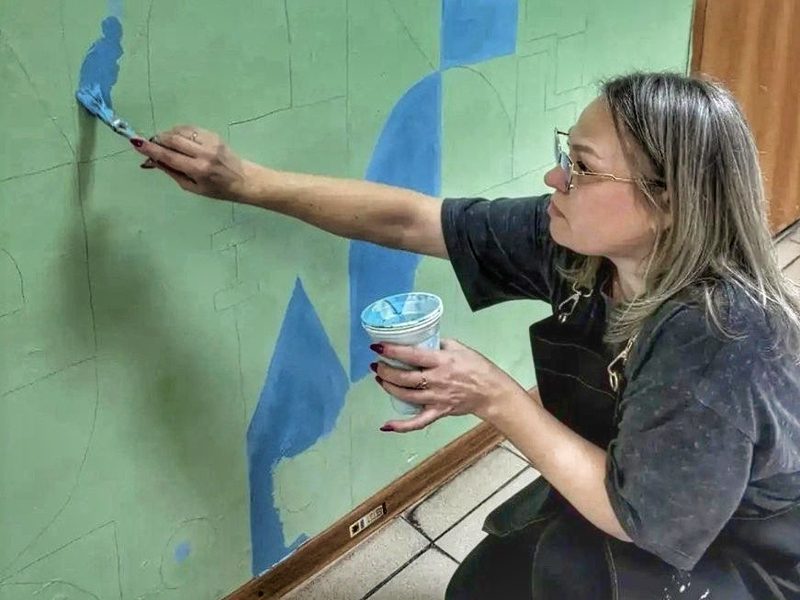 Идея изменить школьную среду принадлежит директору Ксении Мишиной. Она предложила заменить обычные стены на художественное панно. Главной площадкой стал блок начальных классов.