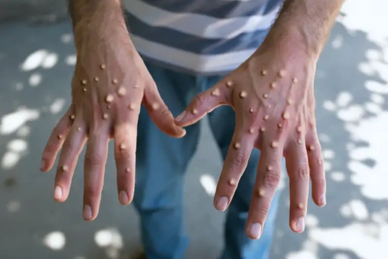 Оспа обезьян (mpox) — вирусное заболевание, родственное натуральной оспе, но протекающее в более лёгкой форме. Главное отличие — увеличение лимфатических узлов, что не характерно для натуральной оспы.