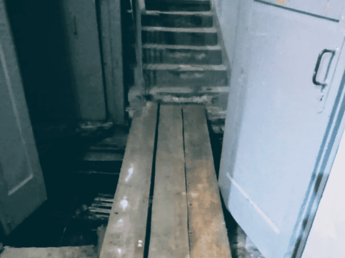 В третьем подъезде дома № 17 на 1-Заводской теперь вместо пола — временный настил. Его установили 12 марта, но жители не верят в надёжность конструкции.
